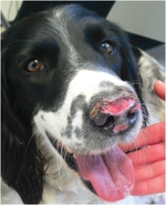 Dogs with this condition will develop crusting and scabbing of the skin. Treatment may include Atopica.