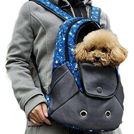 This carrier fits every small dog need for safe pet travel. With an adjustable front hole that has a drawstring to fit pet’s size, it is made from a high-quality canvas material. This backpack offers large compartments for pet food storage, and treats. It also has air-mesh panels for max air ventilation.